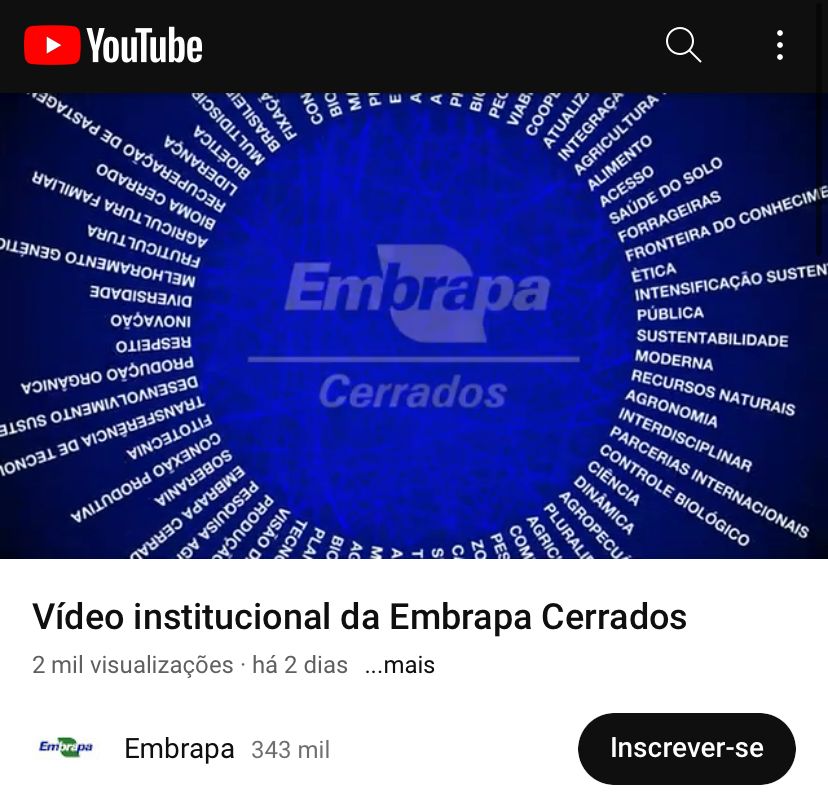 A Embrapa Cerrados é uma das 43 Unidades da Empresa Brasileira de Pesquisa Agropecuária (Embrapa), vinculada ao Ministério da Agricultura e Pecuária (Mapa). Foi criada em 1975 com o desafio de viabilizar a produção agrícola no Cerrado brasileiro. A unidade é um centro de pesquisa ecorregional cujo foco é o desenvolvimento sustentável de agricultura no Bioma Cerrado. Confira o vídeo institucional.