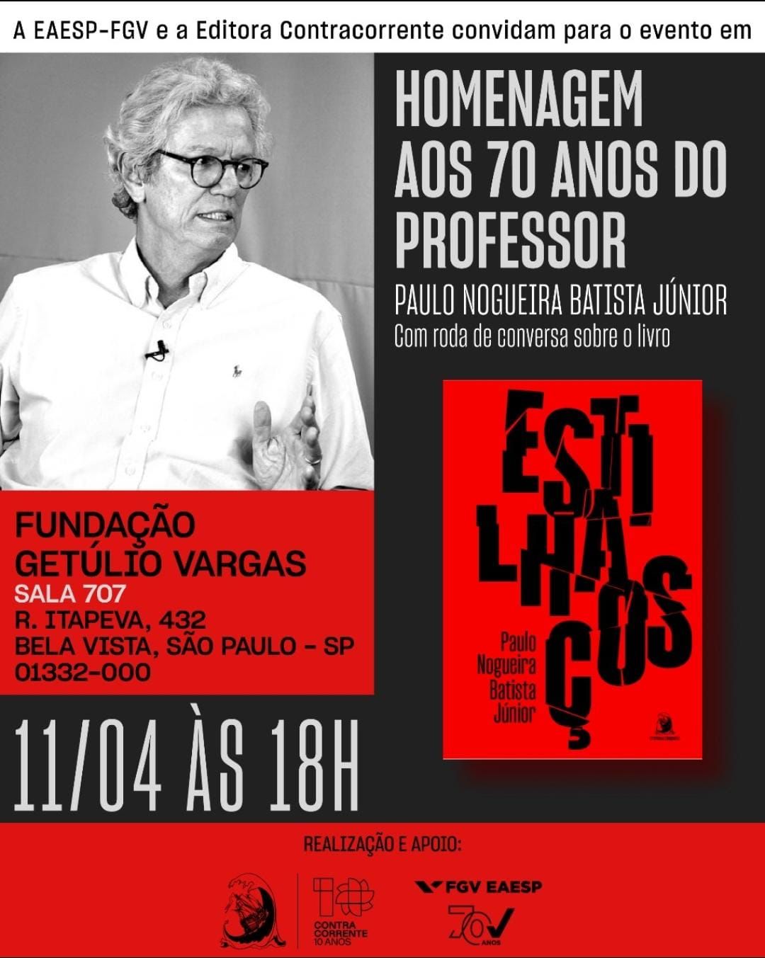 A FGV resolveu celebrar meus 70 anos. Eu nem queria alardear, mas … Se puder, venha me dar um abraço.