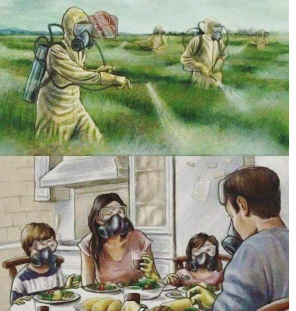 - E envenena o solo, a água e a população com o uso desmedido de agrotóxicos — muitos deles proibidos em outros países, mas largamente aplicados no Brasil com apoio legislativo e lobby empresarial.