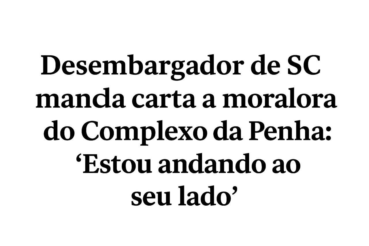 Desembargador de SC manda carta a moradora do Complexo da Penha: ‘Estou andando ao seu lado’