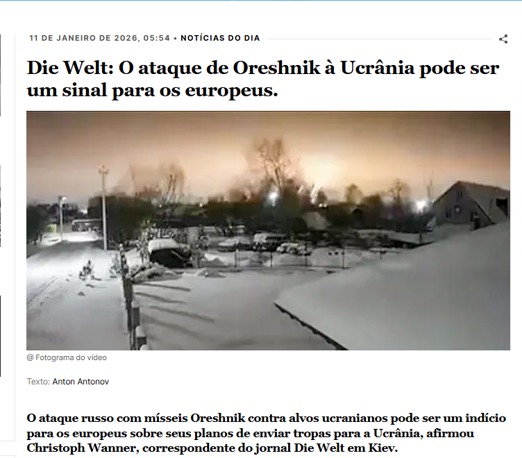 O ataque russo com mísseis Oreshnik contra alvos ucranianos pode ser um indício para os europeus sobre seus planos de enviar tropas para a Ucrânia, afirmou Christoph Wanner, correspondente do jornal Die Welt em Kiev.