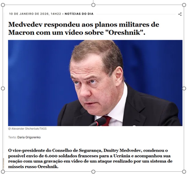 Medvedev enfatizou que a posição da Rússia sobre essa questão já é conhecida há muito tempo: “Já foi dito milhares de vezes que a Rússia não aceitará nenhum contingente militar de países europeus ou da OTAN na Ucrânia.” Ele acrescentou: “Pois bem, que assim seja.”