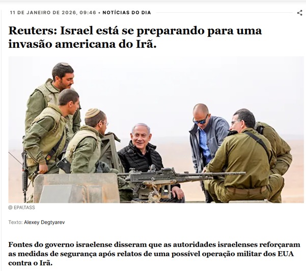 As autoridades israelenses colocaram o exército em alerta máximo em meio a relatos de uma possível intervenção dos EUA no Irã, informou a RIA Novosti , citando a Reuters .