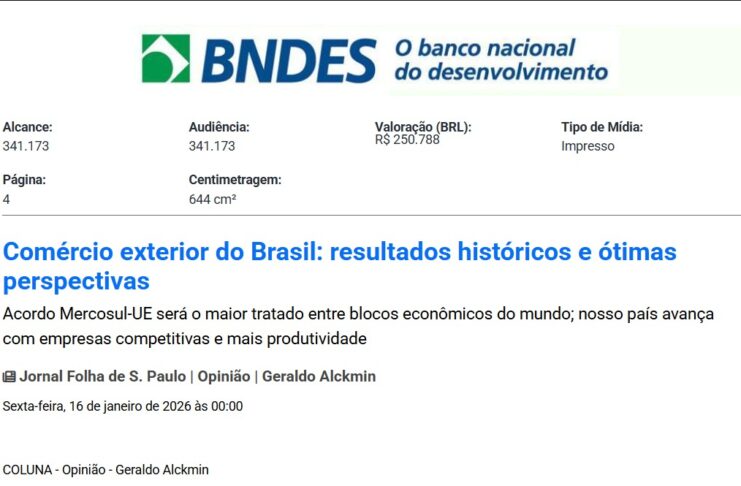 Após um 2025 de recordes para o comércio exterior do Brasil, iniciamos 2026 com ótimas notícias. O acordo Mercosul-União Européia, aprovado pelo Conselho do bloco europeu, será finalmente assinado. Este será o maior acordo do mundo entre blocos comerciais, aproximando países que somam cerca de US$ 22 trilhões em PIB e gerando inúmeras oportunidades para o Brasil. A orientação do Governo brasileiro prevaleceu e as alterações mais recentes, fruto de negociações, aprimoraram o acordo em defesa dos interesses do Mercosul.