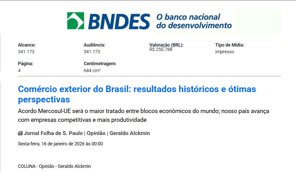 Após um 2025 de recordes para o comércio exterior do Brasil, iniciamos 2026 com ótimas notícias. O acordo Mercosul-União Européia, aprovado pelo Conselho do bloco europeu, será finalmente assinado. Este será o maior acordo do mundo entre blocos comerciais, aproximando países que somam cerca de US$ 22 trilhões em PIB e gerando inúmeras oportunidades para o Brasil. A orientação do Governo brasileiro prevaleceu e as alterações mais recentes, fruto de negociações, aprimoraram o acordo em defesa dos interesses do Mercosul.