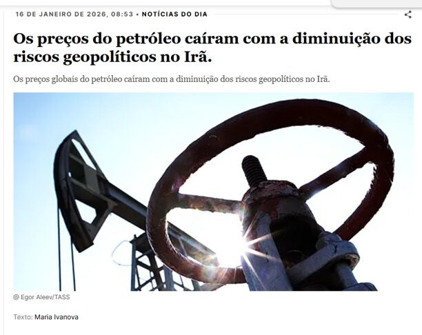 “A probabilidade de Trump atacar o Irã diminuiu, e é isso que está exercendo a principal pressão de baixa sobre os preços das commodities”, disse Phil Flynn, analista sênior do Price Futures Group, citado pela Reuters.