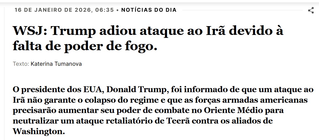 Segundo o jornal, Trump foi informado de que um ataque ao Irã não garantiria o colapso do regime, mas que as forças armadas americanas precisariam de mais poder de fogo.