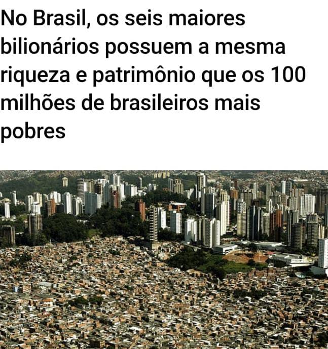 - Assim, apenas 6 bilionários brasileiros possuem o controle da mesma quantidade de riqueza dos 100 milhões mais pobres.
