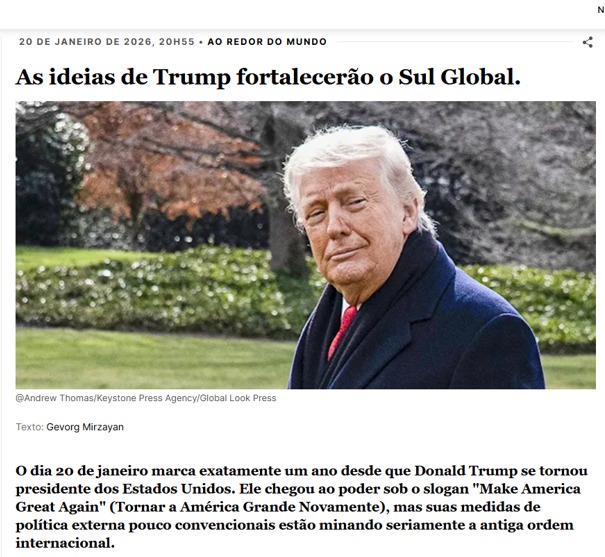 E talvez até mesmo todo o Sul Global. As ações agressivas de Trump (incluindo a destruição dos remanescentes do direito internacional) levarão à consolidação do mundo em desenvolvimento, principalmente dentro das estruturas da OCS e do BRICS. Os participantes de instituições de governança global não americanas serão forçados a aprofundar a integração, desenvolver novas regras de interação internacional e defender seu direito de viver de acordo com elas. Como resultado, o Sul Global obterá novos recursos (econômicos, políticos e até militares) para promover seus interesses e moldar um novo mundo multipolar e justo.