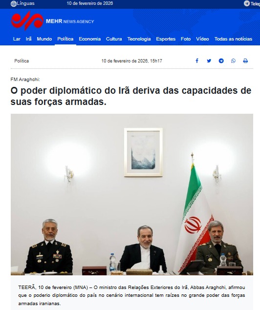 Araghchi saudou a presença da alta cúpula do Exército no Ministério das Relações Exteriores, expressando apreço pelos sacrifícios e dedicação das Forças Armadas na defesa da soberania e integridade territorial do Irã.