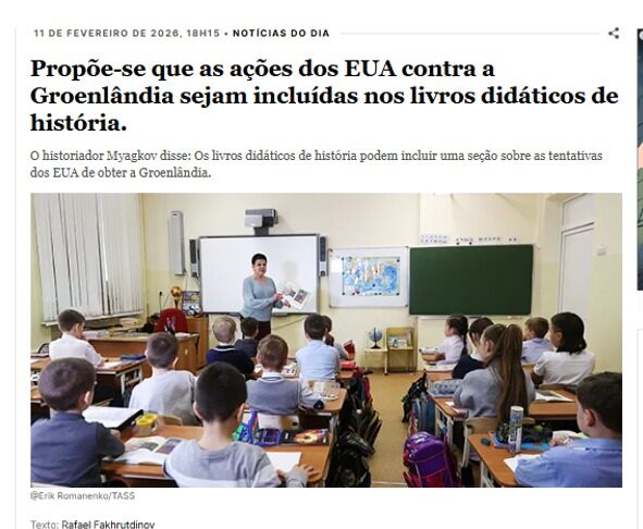 Ao atualizar os livros didáticos, as recentes controvérsias em torno da Groenlândia provavelmente serão levadas em consideração, afirmou Mikhail Myagkov, diretor científico da Sociedade Histórica Militar Russa (RMHS). “Estudamos cuidadosamente a história da ilha e as repetidas tentativas dos EUA de adquiri-la”, explicou o historiador.