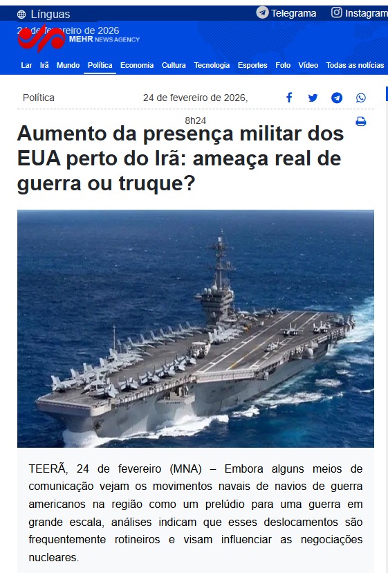 Esses destacamentos fazem parte do programa de rotação de rotina da frota dos EUA, mas, nas condições atuais — simultâneas à pressão de Trump para se chegar rapidamente a um acordo nuclear e à sua ameaça de “coisas muito ruins” em caso de fracasso das negociações — eles assumiram um tom simbólico e agressivo.